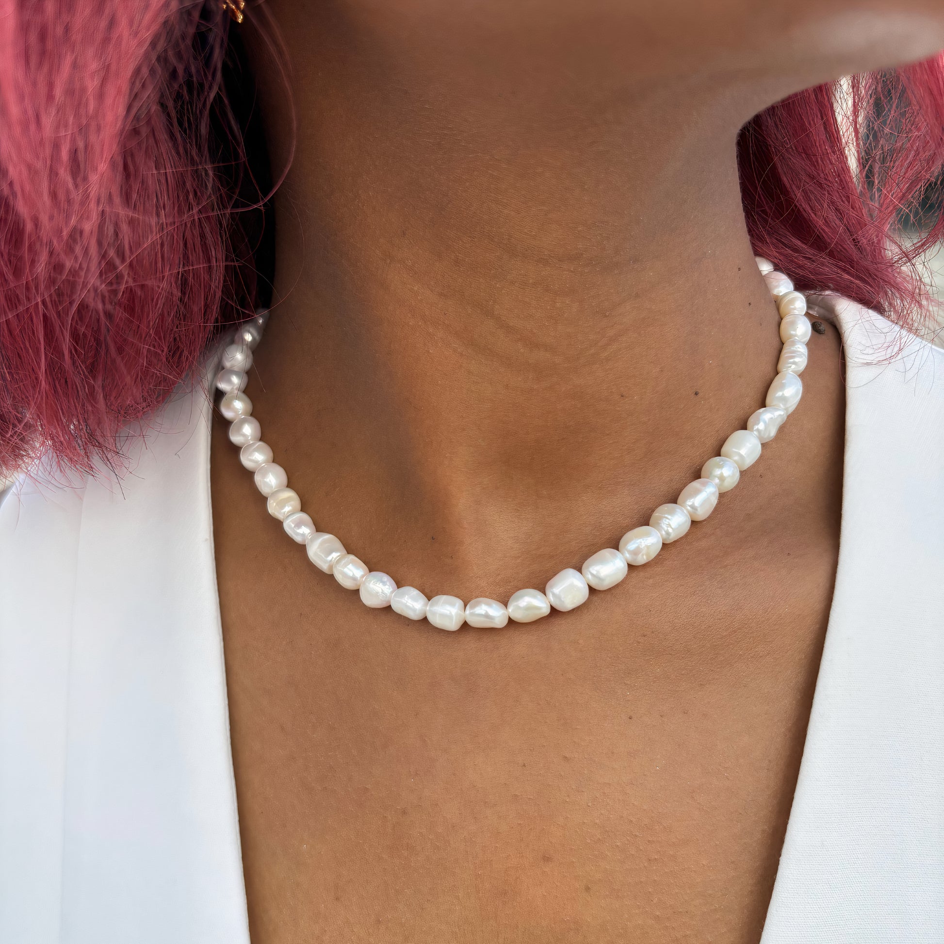 Collier en perles d'eau douce et chaine d'extension